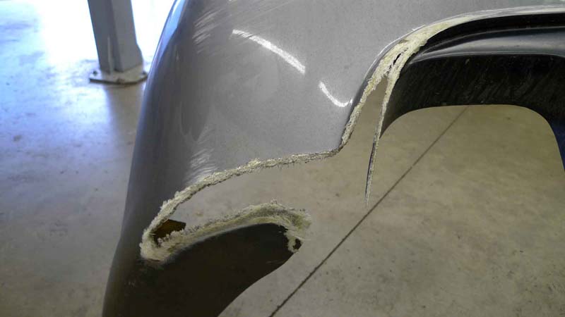 To reconstruct the bumper we used fibre-glassing techniques to re-blend the bumper from old to new. In the process the fibreglass is strengthened and rebuilt up with additional layers actually making the bumper stronger than before.