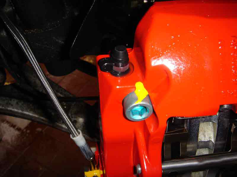 After stripping the original brakes off the car we installed the new Brembo Kit on the vehicle, Please observe that we use tamper-proof sealing paint on all the nuts and bolts to ensure the system is safeguarded for warranty purposes. We also torqued all the nuts and bolts to their correct setting.